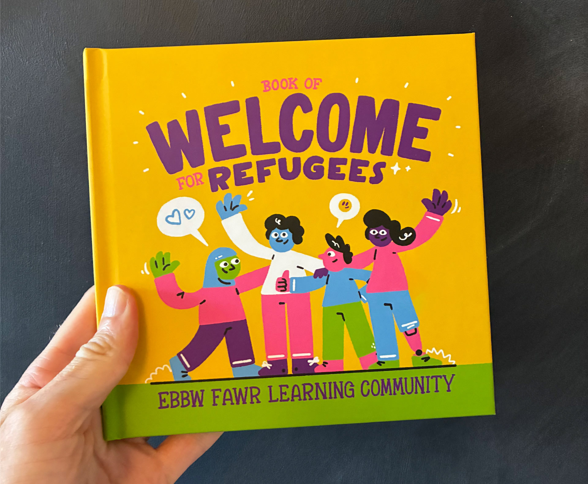 Working with Ebbw Fawr Learining Community pupils we created a book to welcome refugees to the school. We generated ideas and content by running mural workshops with pupils themed around inclusivity and anti-racism. Then the pupils expanded on this and supplied some of their own content, from welcome messages to pieces of art.